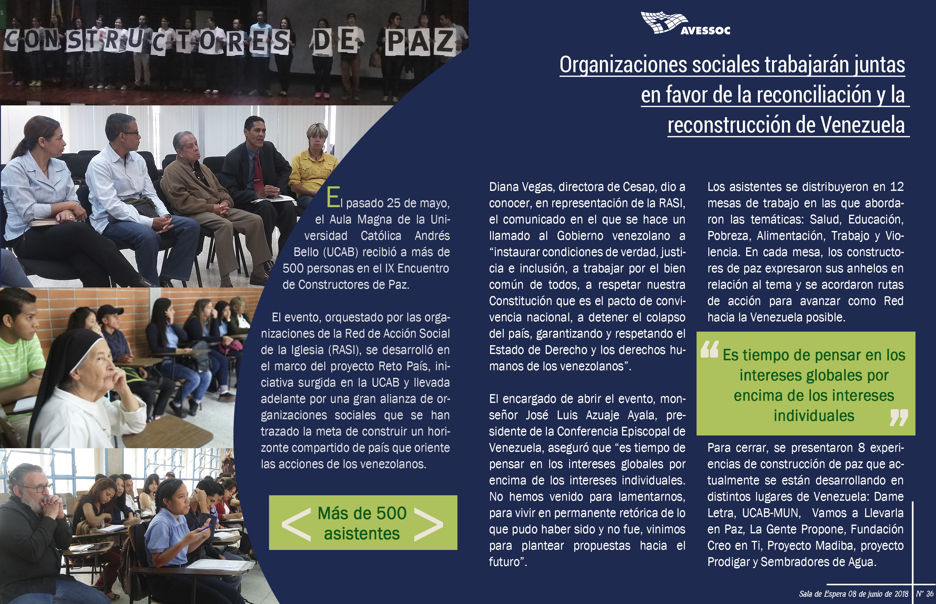 El pasado 25 de mayo, el Aula Magna de la Universidad Católica Andrés Bello (UCAB) recibió a más de 500 personas en el IX Encuentro de Constructores de Paz.